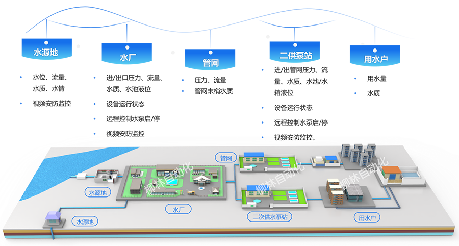贯通"水源-水厂-泵站-管网-用户"全业务场景,构建水务数字孪生体系,提高运营管理效率。
