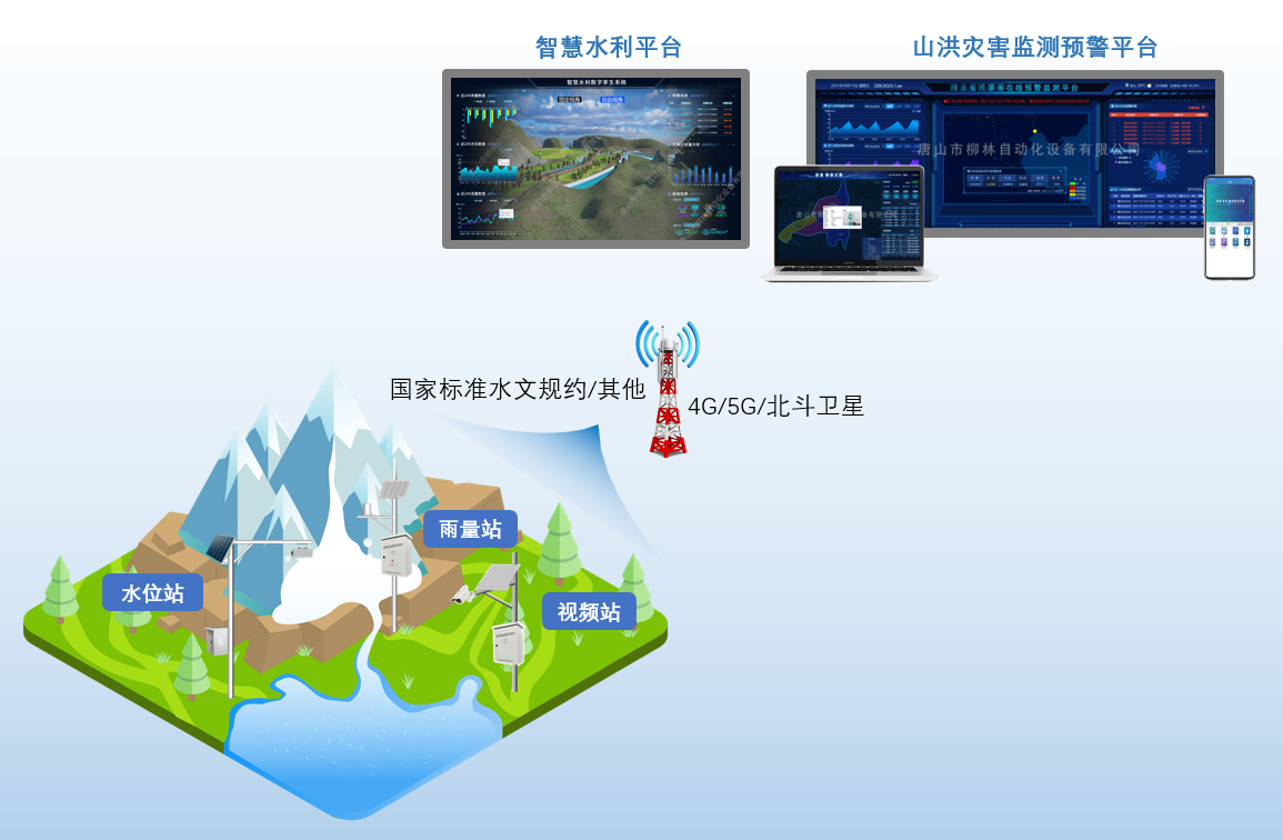山洪灾害防治监测预警系统是集物联网感知、传输、监测预警和应用于一体的智慧防灾解决方案。系统通过采集终端对各项水文数据进行实时监测,并将数据上传到山洪灾害预警平台,平台对所得的数据进行综合分析并得出预警信息进行发布,从而提高山洪灾害监测预警预报能力和应急救灾快速反应能力。