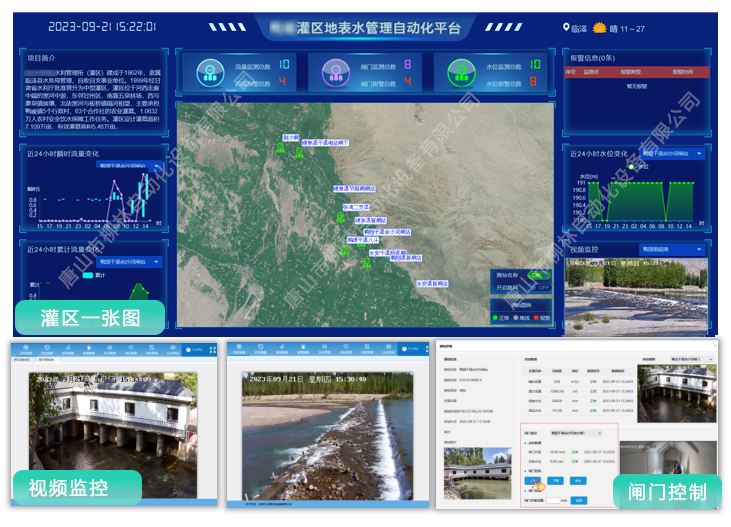 柳林灌区地表水管理自动化平台包含“智慧灌区一张图”、“实时数据总览”、“闸门远程控制”、“视频监控”、“报警数据”、“巡检管理”等功能板块。灌溉管理中心可总览灌区设备运行状态,对输配水节制闸进远程控制,直观、形象地为管理部门提供灌渠实时流量查询、报表管理等服务,确保管理人员迅速、及时、准确地掌握灌渠的流量、水位信息,为农田水利管理工作提供有效支撑,提升农田水利信息化、数字化管理水平。