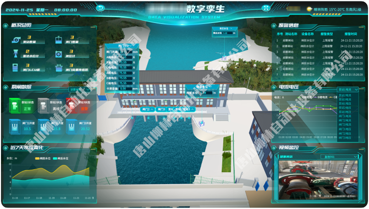 闸门远程监控系统可实现一张图监测数据实时显示,配并有现场孪生3D可视化实景画面,通过对现场闸门监测站进行三维建模,多角度呈现闸门主体、启闭机、渠道水位等场景,根据水位远程控制闸门开关,水位越限、闸门鼓掌智能报警。同时可实时查看闸门的当前开度、温度、电压、当前流量、累计流量,做到精确控水用水。 | ||||