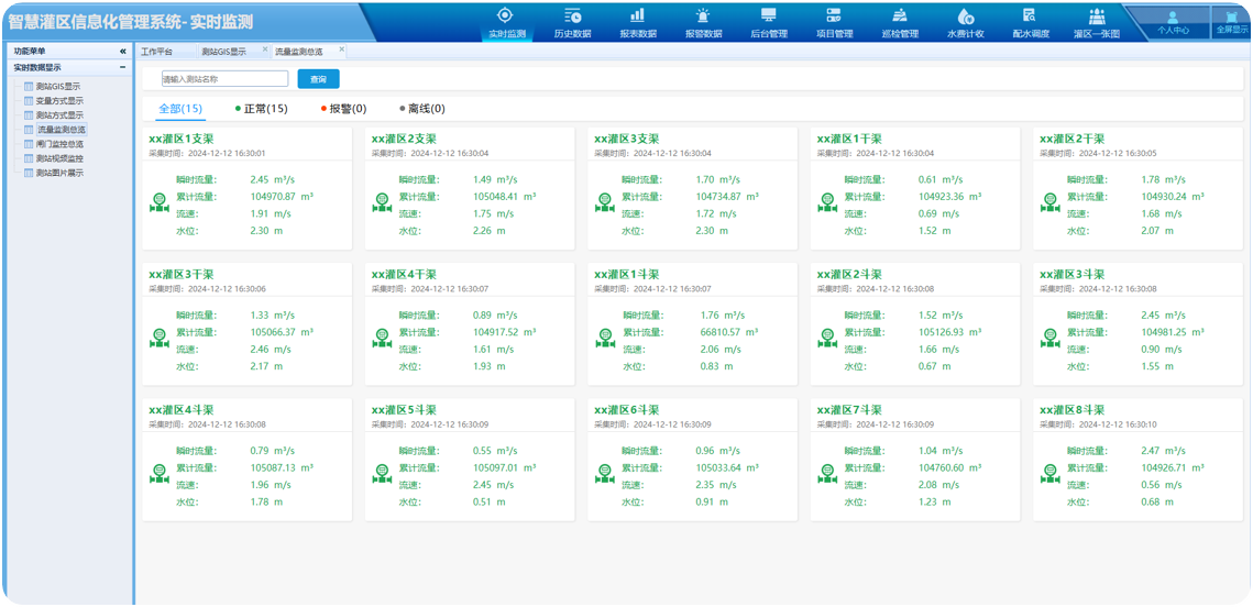 | 灌区渠道量测水管理是一套集成了自动化监测、数据传输、数据分析和灌溉决策支持等功能于一体的智能化系统。它通过对灌区内的水量进行实时监测和计量,为灌区管理提供准确的数据支持,从而实现水资源的合理配置和高效利用。 | |||